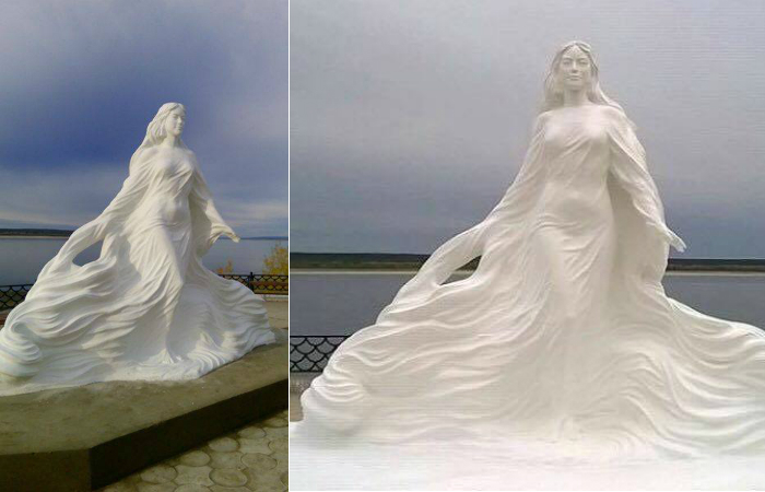 На набережной в якутском городе Олекминске появилась новая достопримечательность — памятник реке Лене. Трёхметровый постамент работы известного якутского скульптора Николая Чоччасова установили к 380-летию города. Работу он начал в июле, а через два месяца уже представил общественности готовую скульптуру. Основой для монумента послужил набросок 5-классницы, работа которой победила на конкурсе детских рисунков «КП».
